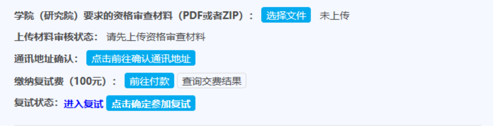 所有进入复试的考生均须在学院规定的时间内,通过我校研究生招生管理信息系统(http://gmss.dgqinyehang.com/logon)选择“硕士研究生复试录取”栏目完成“复试确认(资格审查材料上传、缴费)”、“意向导师选择”。