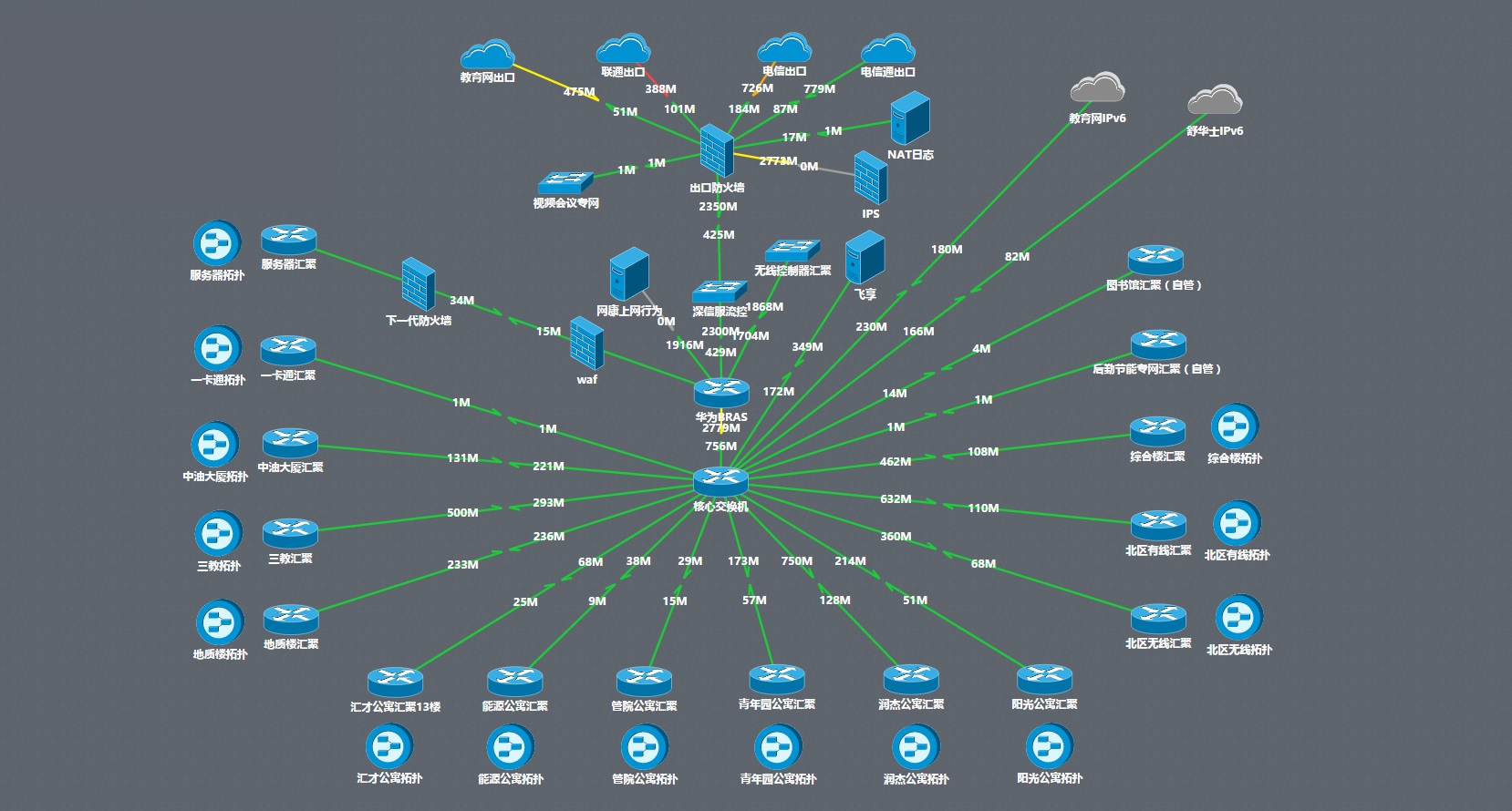 我校校园网络建设启动于1996年3月,作为“九五”“211”工程的重要工程, 通过多年的建设和运行,我校网络已覆盖了校内几乎所有的楼寓,形成了万兆以太网为主干、千兆到桌面的高速校园网络,有线、无线全覆盖,联网用户终端超过28000台。整个校园网现有教育科研网(Cernet)600M和中国联通500M、中国电信1000M三个出口,出口总带宽为2100M。现拥有教育网IP地址为202.204.192.0到202.204.207.255、118.228.192.0到118.228.223.255;联通IP地址61.50.142.25-61.50.142.31、61.50.138.129-61.50.138.159;电信IP地址36.110.20.0-36.110.20.127、106.39.120.0-106.39.121.255。校园网采用自动获取IP地址+用户身份认证方式,收费实行包月制,每个用户每月20元。目前已经开通了数十个网站和网络服务系统,如:域名服务系统、CMS网页发布系统、教工与学生邮件系统、虚拟化系统、教务系统、机房计费管理系统、BBS论坛等网络服务系统。