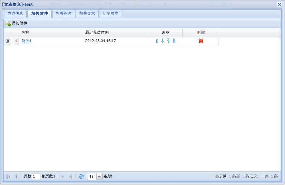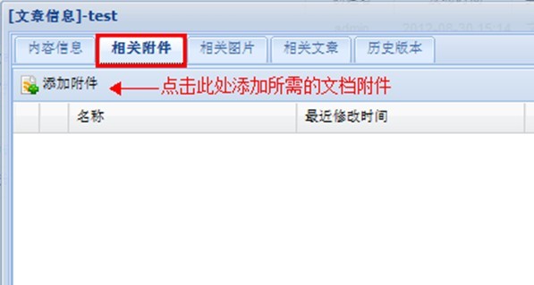 点击后,将弹出文章内容信息的窗口。在此窗口标签处点击“相关附件”: