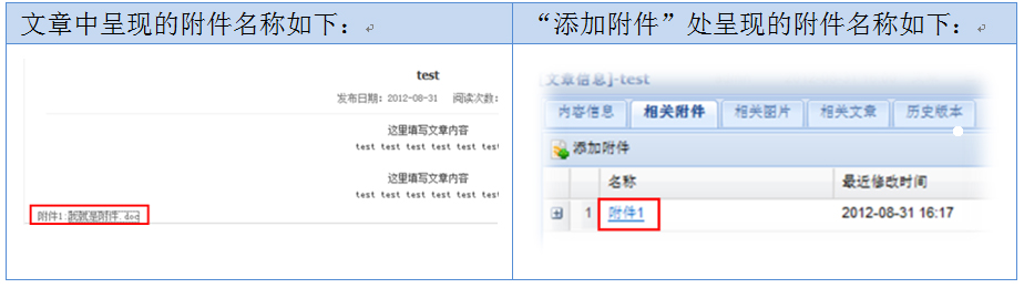 文章下方供浏览者下载附件处的名称为上传附件的文件名,与上传时在“相关附件”处填写的名称无关。该名称只在文章信息处显示。