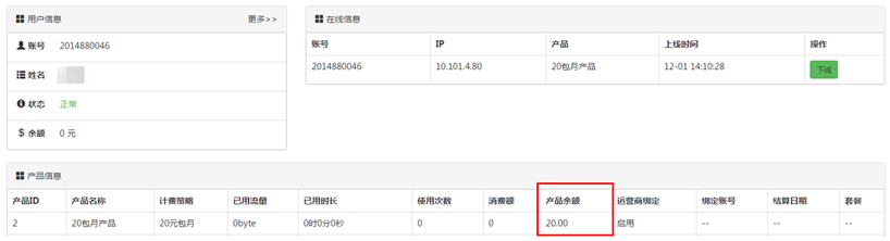 服务 首页 > 服务 > 校园网 校园网 在浏览器中输入网址http://login.dgqinyehang.com,选择“自服务”,(若未登录,见图1;若已登录,见图2),进入自服务界面,“产品余额”即为网费余额(见图3)。 图1 图2 图3 2019-07-22 校园网概况 2015-12-02 查询余额 2015-12-01 如何下线 2015-11-04 收费办法 2015-11-04 上网流程