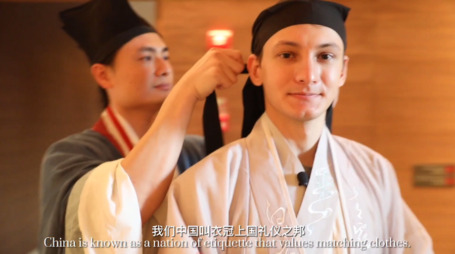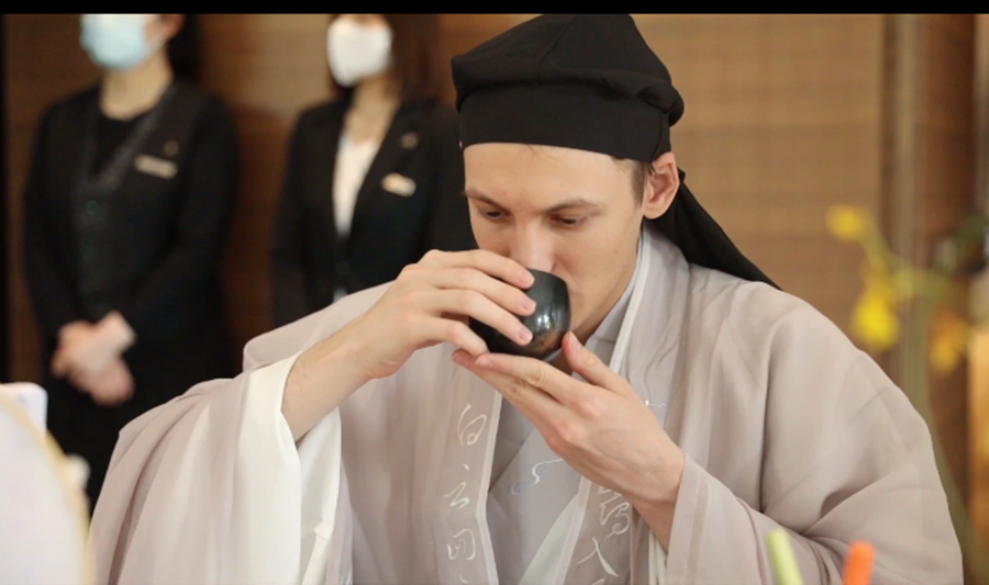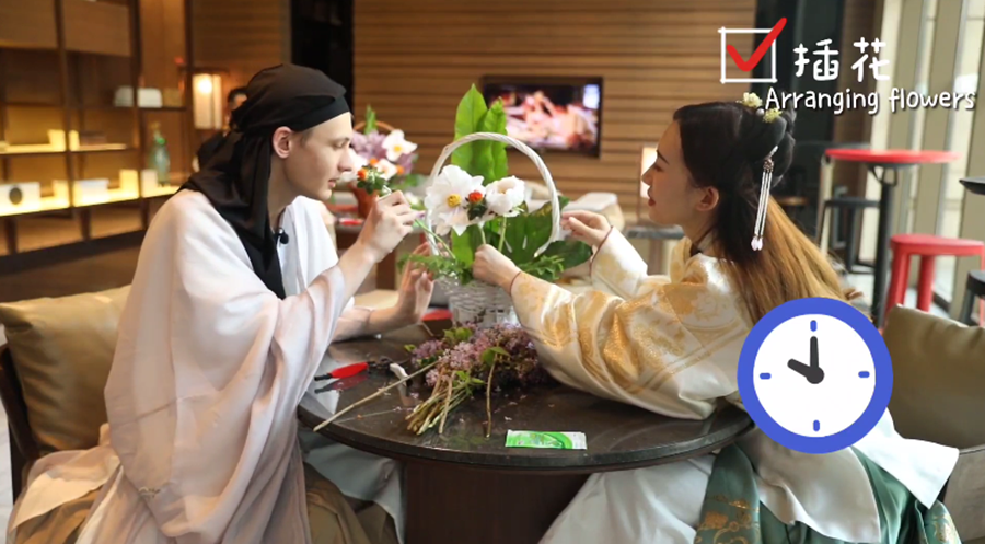 HABAROV ARTYOM, a Turkmenistan international student from China University of Petroleum (Beijing) Grade 2018, was invited to take part in the shooting. The host Ma Xiao and HABAROV ARTYOM wore Chinese costumes together, watched the traditional classical dance, and enjoyed the exquisite Spring Festival banquet at the Marriott Hotel Leduo in Changping. They experienced the ancient pot-throwing games, learnt traditional flower arrangement, tasted traditional Chinese food, practiced archery, felt ancient Chinese etiquette culture, and had a "time travel" to the ancient China.