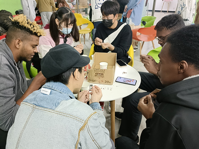 Beads are the traditional decorations of Sudan, an African country. International student ALI ABDALLAH BALAL MOHAND instructed Chinese and foreign students on the spot to learn how to make beads, and told them the profound cultural connotation of this small string of beads.