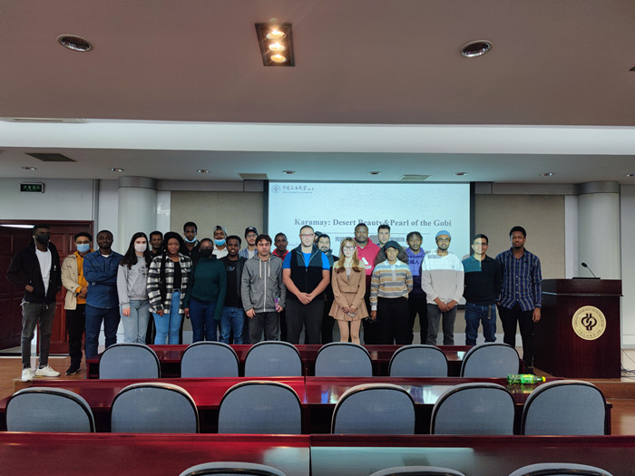 In order to promote the international students of China University of Petroleum (Beijing) to understand the spirit of China Petroleum, and guide international students to learn and understand the spirit of petroleum, the College of International Education invited the Master of Chinese International Education from the School of Foreign Languages Du Chaoqun in Conference Room 306 of the International Exchange Center for China University of Petroleum(Beijing) international students gave a lecture on the spirit of petroleum "Karamay-Desert Beauty, Pearl of the Gobi" on October 14th..