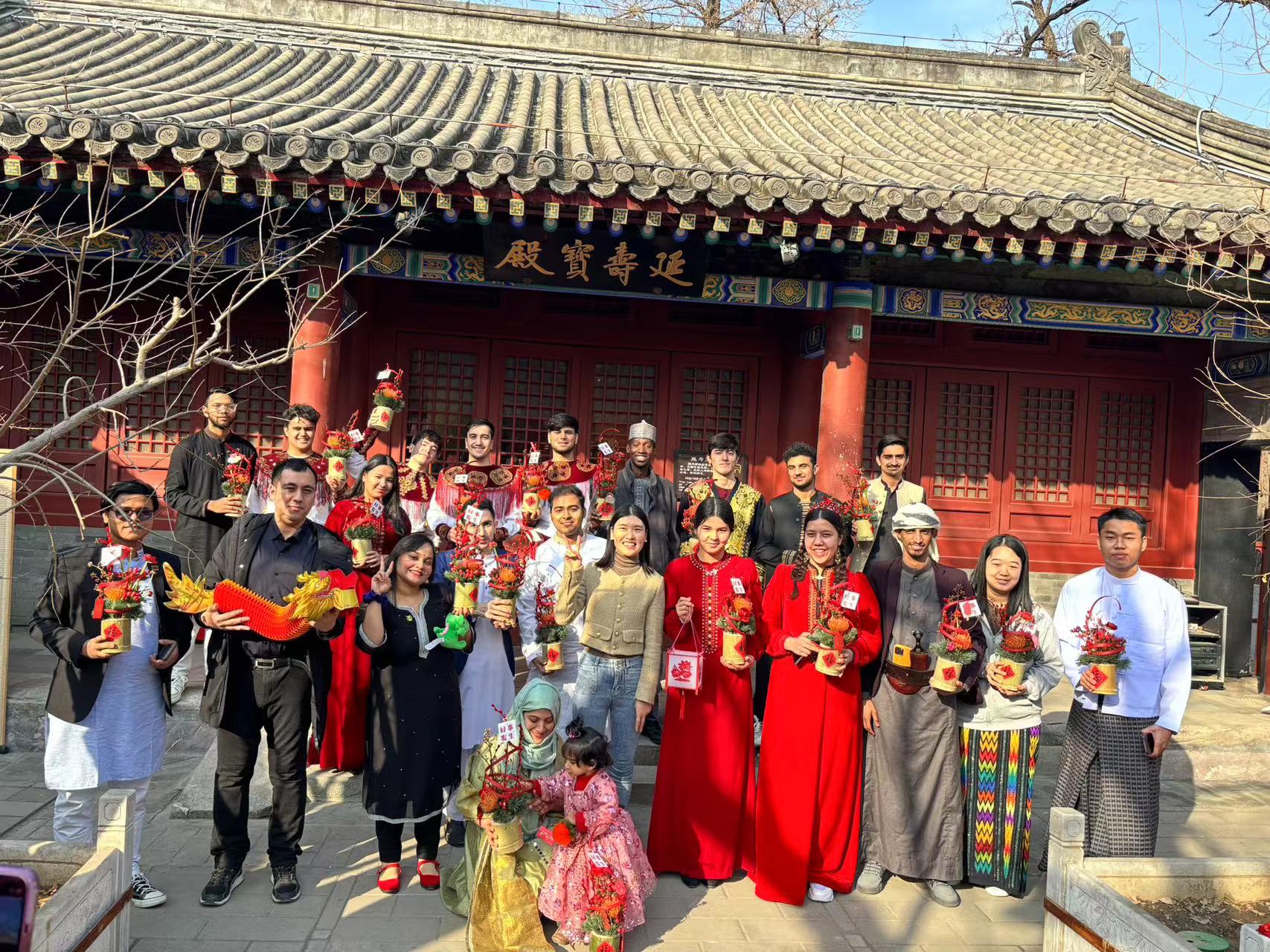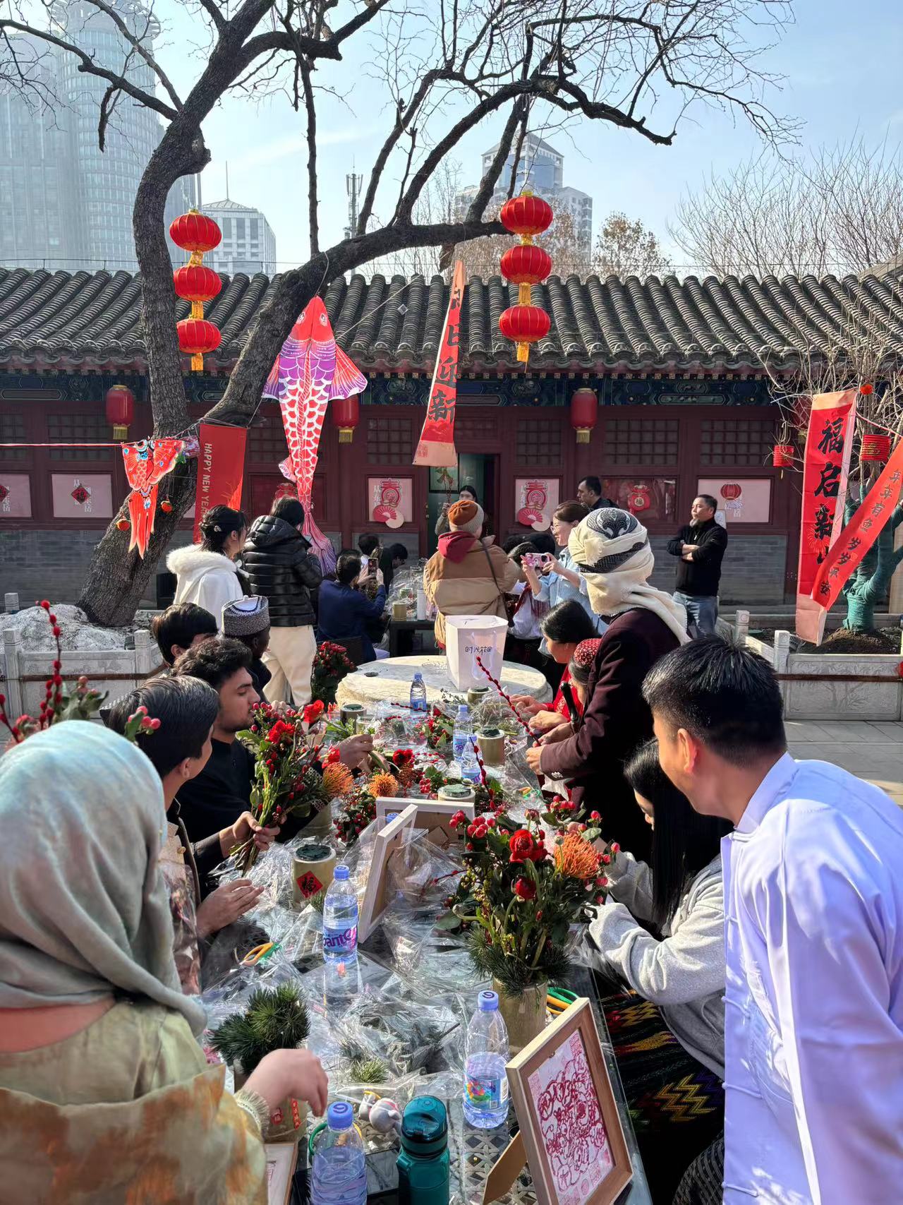 2024年2月13日,20位中石大国际学生来到了北京民俗博物馆,参与第二十三届北京民俗文化节春节非遗体验专场活动。活动中,学生们身着民族服饰,沉浸式互动与体验中华传统文化,通过观看舞狮表演、亲自制作传统工艺品和参与传统游戏,体验中华文化的魅力,了解民俗文化精髓,品味到了地道的“年味”。在活动中,学生们游览国潮市集,在泥塑、面塑、糖人等40余个摊位前体验多彩的民间艺术的厚重底蕴和独特魅力。