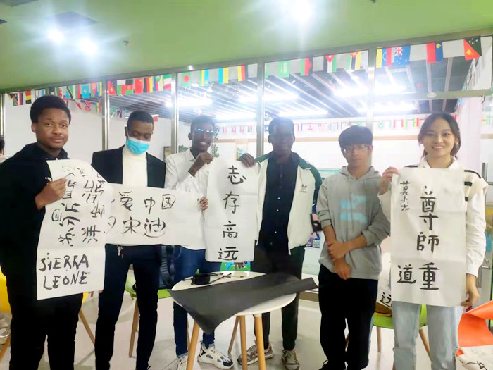 本次活动分为三个交流部分:第一部分是制作苏丹传统串珠,感受外国文化风情;第二部分是品尝中华传统糕点,学习中国传统文化知识;第三部分是习练中国传统书法,重温经典。