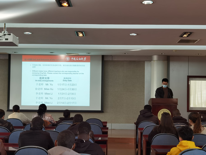 鉴于目前的疫情防控形势,为使全体国际学生顺利度过愉快、安全的假期,减少寒假期间安全事故的发生,国际教育学院于1月13日和14日分别对校内外国际学生举行了寒假注意事项告知会。