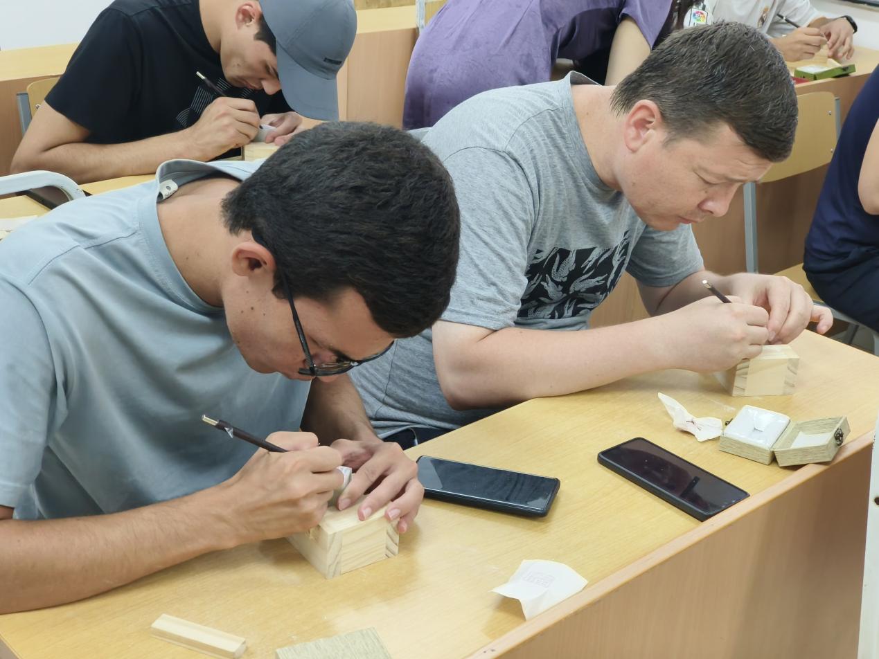除课堂与科研活动外,项目还注重文化交流与实践体验。校内活动中,学员们学习了剪纸、篆刻、拓印、漆扇制作等中国传统技艺,并身着汉服体验古代服饰文化,切身感受中华文化的艺术之美。