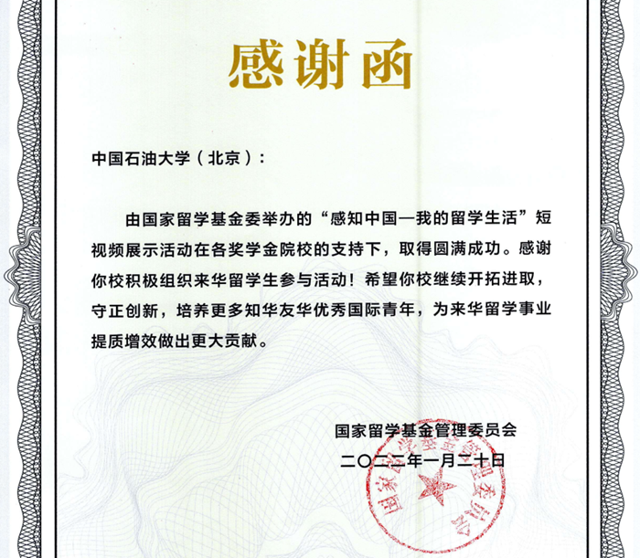 2022年1月20日,由国家留学基金委举办的“感知中国一我的留学生活”短视频展示活动取得圆满成功。