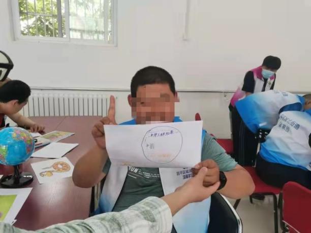研会志愿者首先对温馨家园的大家长园长翟迪老师中进行了专访,在翟迪园长为志愿者团队介绍了园区的基本情况后,志愿者们对残障人士进行生活帮扶和知识科普。之后,志愿者们一对一的与帮扶对象进行了亲切地交谈,运用地球仪,各类矿石标本、动物图片等道具,分组为残障人士耐心地讲解了地理小知识,并以“我心中的地球”为题鼓励他们进行绘画创作,激发他们的兴趣。在科普和交流活动结束后,地球科学学院研究生会的志愿者们为温馨家园送上了水果,牛奶等爱心物资,并对园区内环境进行了清扫,维持了园区内的整洁卫生。