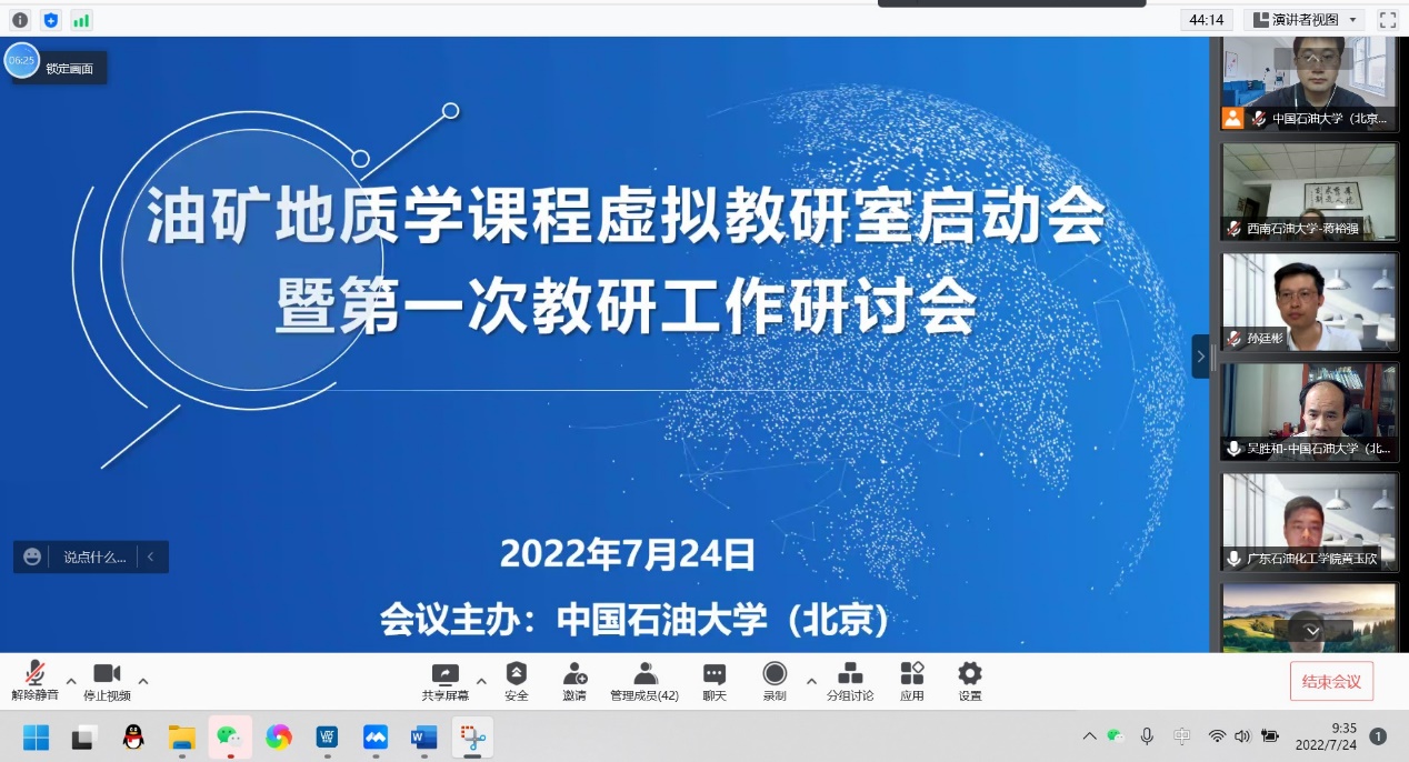 为贯彻落实教育部《关于加快推进虚拟教研室试点建设工作的通知》的工作要求,发挥虚拟教研室在加强教学研究、推进教学改革、交流教学经验、促进协同发展、资源共建共享等方面的积极作用,2022年7月24日,油矿地质学课程虚拟教研室召开了启动会暨第一次教研活动。参会单位有中国免费靠逼视频(北京)、中国免费靠逼视频(华东)、西南免费靠逼视频、长江大学、东北免费靠逼视频、西安免费靠逼视频、吉林大学、中国地质大学(北京)、西北大学、成都理工大学、延安大学、重庆科技学院、广东石油化工学院13所国内高校和大港油田、石油工业出版社,共计45位参会代表。会议为线上方式,油矿地质学课程虚拟教研室负责人吴胜和教授致欢迎词,岳大力教授主持,分三个议程进行。