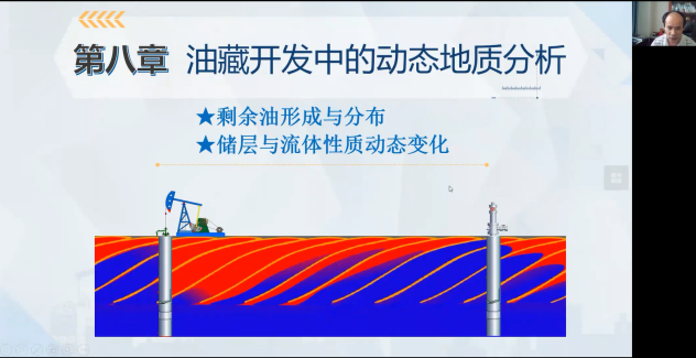 会议第二阶段为示范课讲授。吴胜和教授以油矿地质学课程“第八章 油气藏开发地质中的动态地质分析”中的“层间剩余油”为主题,从知识点导入、问题链解析、师生互动、信息工具使用、课程思政融入等方面对课堂教学元素进行了展示,讲授了一堂生动的示范课。