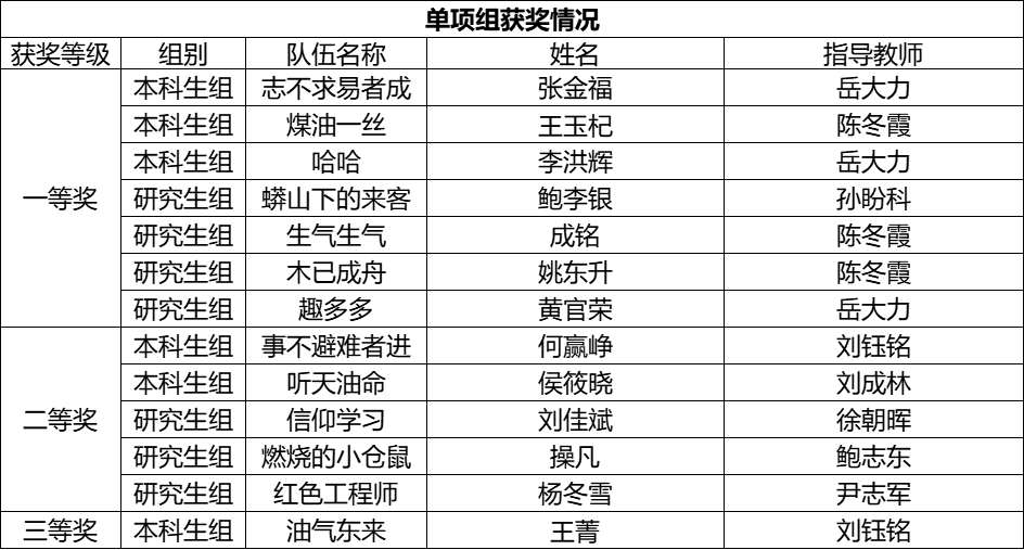附:中石大学生在第五届全国油气地质大赛上获奖名单
