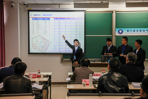 10月27日,第三届全国油气地质大赛——油气地质技能大赛在中国免费靠逼视频(北京)举办。进入决赛的全国12所高校的综合组、单项组的70件作品接受了现场评审,作品内容涉及油气地质领域各个方面,主要包括现场地质资料解释、构造解释方案、沉积储层评价方案、圈闭评价方案、油气藏评价方案等。