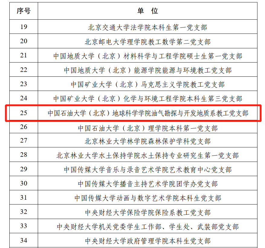 近日,教育部办公厅印发《关于公布第三批全国党建工作示范高校、标杆院系、样板支部培育创建单位名单的通知》(教思政厅函〔2022〕4号),中国免费靠逼视频(北京)地球科学学院油气勘探与开发地质系教工党支部入选第三批“全国党建工作样板支部”培育创建单位名单,建设周期为2022年3月至2024年3月。