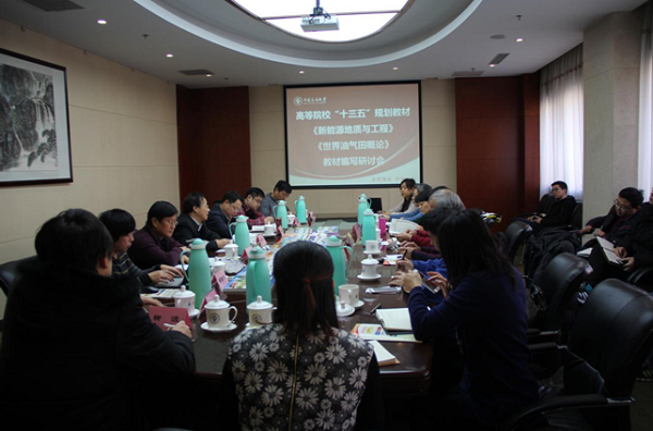 刘成林教授担任会议主持人并作欢迎致辞,向大家介绍了现今本科生与研究生教材的使用情况及存在的问题,认为一本合适的教材是提高教学质量的关键;石油工业出版社高教分社徐秀澎社长向大家介绍了两本教材的建设背景以及最新的富媒体教材。在一天的时间里,大家对《非常规油气与可再生能源》和《世界油气资源分布》两本教材的书名、大纲、编写分工以及进程安排进行了深入探讨,每位专家各抒己见,结合各自的教学与研究领域提出了自己的见解以及宝贵的意见,达成了广泛共识。二教材将在