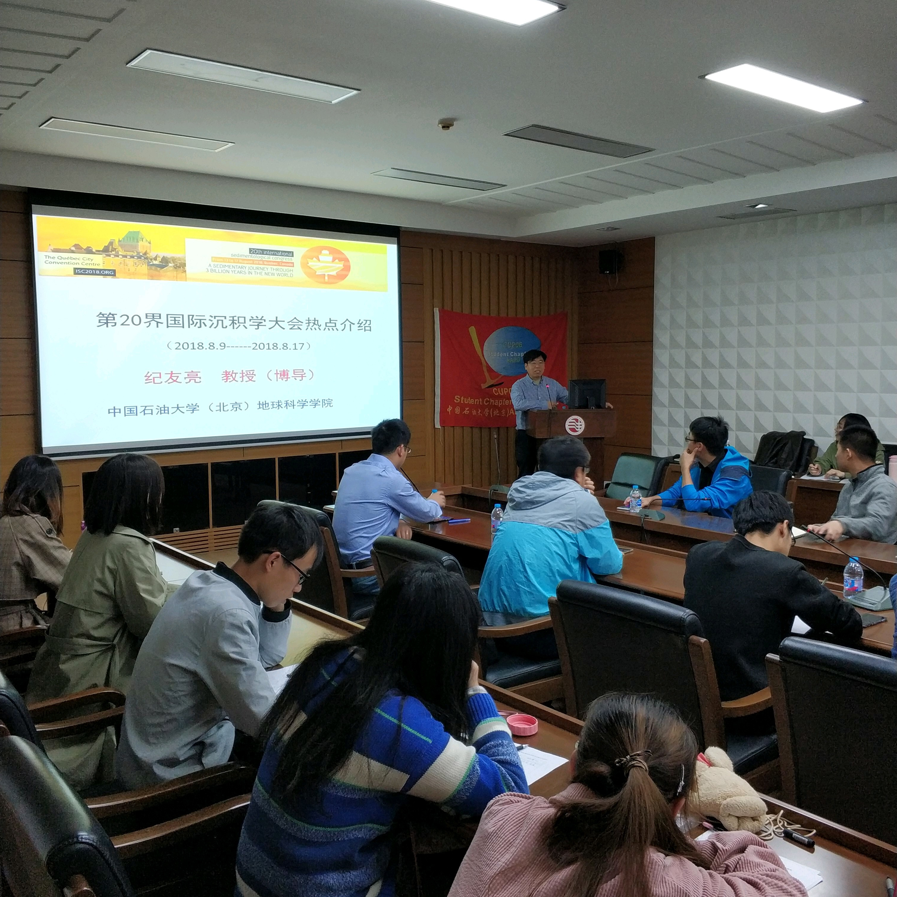 2018年10月18日,地球科学学院油气勘探与开发地质系与中国免费靠逼视频(北京)AAPG学生分会在地质楼204联合举办了油气勘探与开发地质系第二十二期学术沙龙。本期学术沙龙以“第20届国际沉积学大会热点介绍”为主题,由中国免费靠逼视频(北京)地球科学学院纪友亮教授主讲,60余名师生共同参加了此次活动。