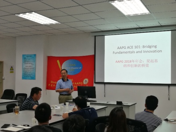 AAPG2018年年会于5月20日-23日在美国犹他州盐湖城召开,设立了10个专题,共有400个口头报告,600个展板报告,柳广弟教授认为AAPG 2018年年会是架起基础和创新的桥梁,向大家分享了会上的一些报告主题及关于“SuperBasin”的内容,重点展示了会后野外考察路线8的东南犹他州野外实例分析,其中两侧一米厚的断层泥带夹几米厚的断层透镜体的断裂结构特征、露头观测到的断裂带作为油气运移的通道(裂缝带)现象引起大家极大的兴趣。王飞宇教授从Superbasin、非常规油气评价、油气地质中大数据和人工智能、绿河页岩组湖盆演化源岩和微生物岩及油气饱和度(saturation) 五个方面来进行展示,油气地质中大数据和人工智能、碱湖及微生物岩等引起在座师生的激烈讨论。王老师提出了五个在AAPG与会过程中关注的主要问题,并认为科学数据和样品的积累,是创造新知识和传播知识的基础,我们主要从提供区域数据,到创新研究领域知识。