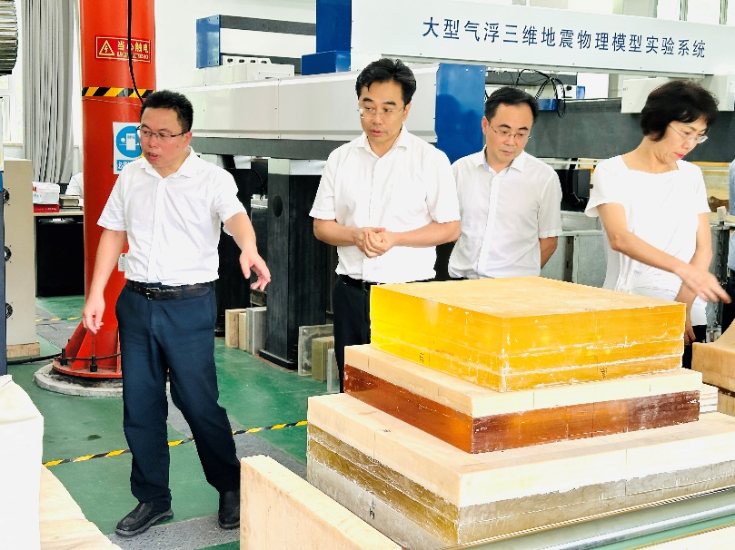 考察期间,秦绪文主任一行实地参观了沉积动力过程模拟、岩石力学、井孔流固耦合、地震物理模型、CCUS等多个特色实验室。魏建新、韦世明等实验室专家重点介绍了在油气资源高效开发领域取得的技术突破。考察团对实验室的先进设备与创新成果给予高度评价,并就实际工作中的技术难题与科研团队进行了深入探讨。