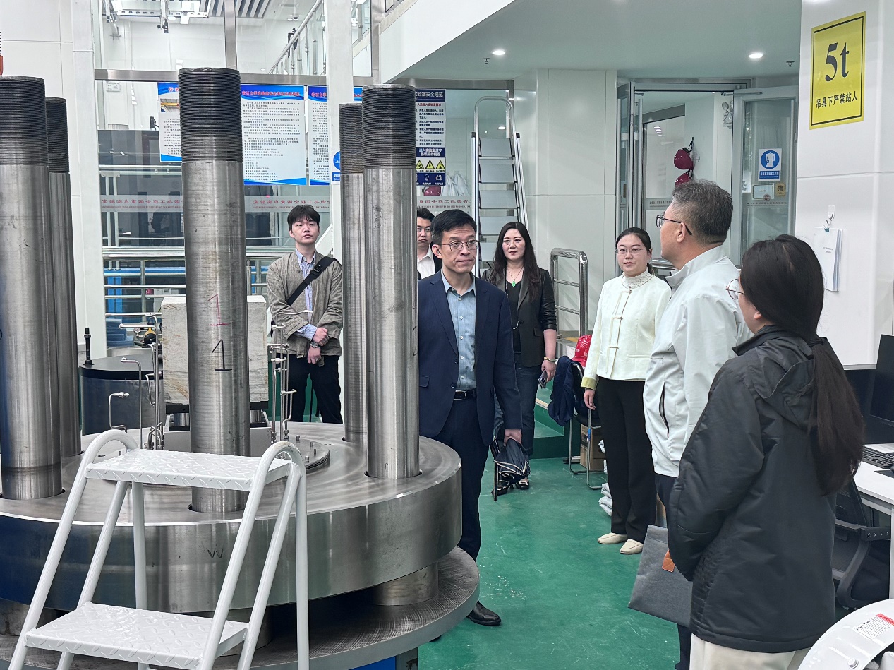 在参观过程中,刘勇一行重点考察了地震物理模型实验室、生排烃模拟实验室、井孔流固耦合实验、岩石力学实验室及沉积-地层物理模拟(水槽)实验室等核心科研平台,对实验室的先进技术装备和科研成果给予了充分肯定。