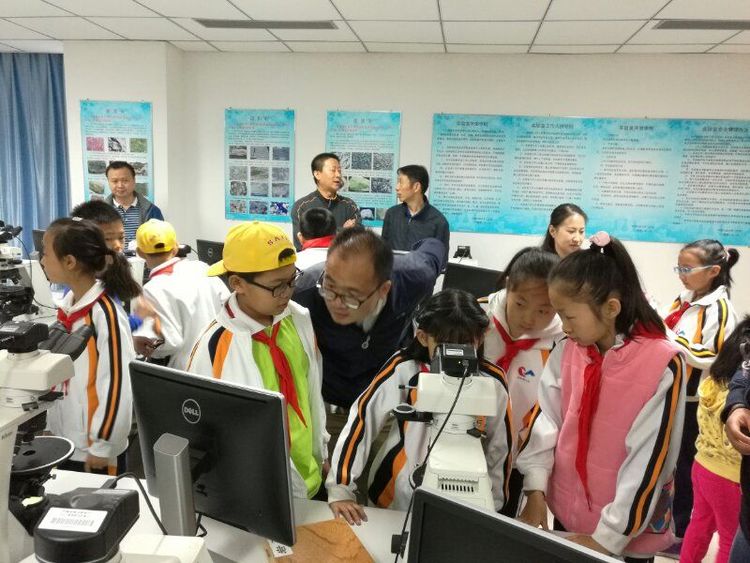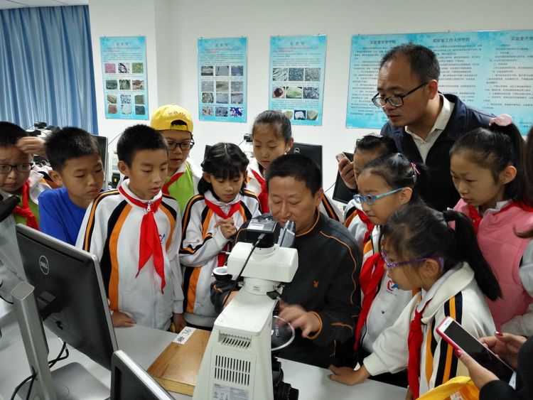 第二站来到国家实验教学示范中心基础地质教学实验室。温老师给大家在显微镜下放置了岩石薄片样本,普通的石头在显微镜下立刻变得光彩夺目!
