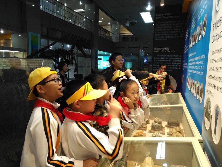 小朋友们都认真听地学院的温老师讲解,他将深奥博大的地球科学知识讲解的通俗易懂。温老师主要介绍了地球历史,矿物成分,岩石类型等相关知识!