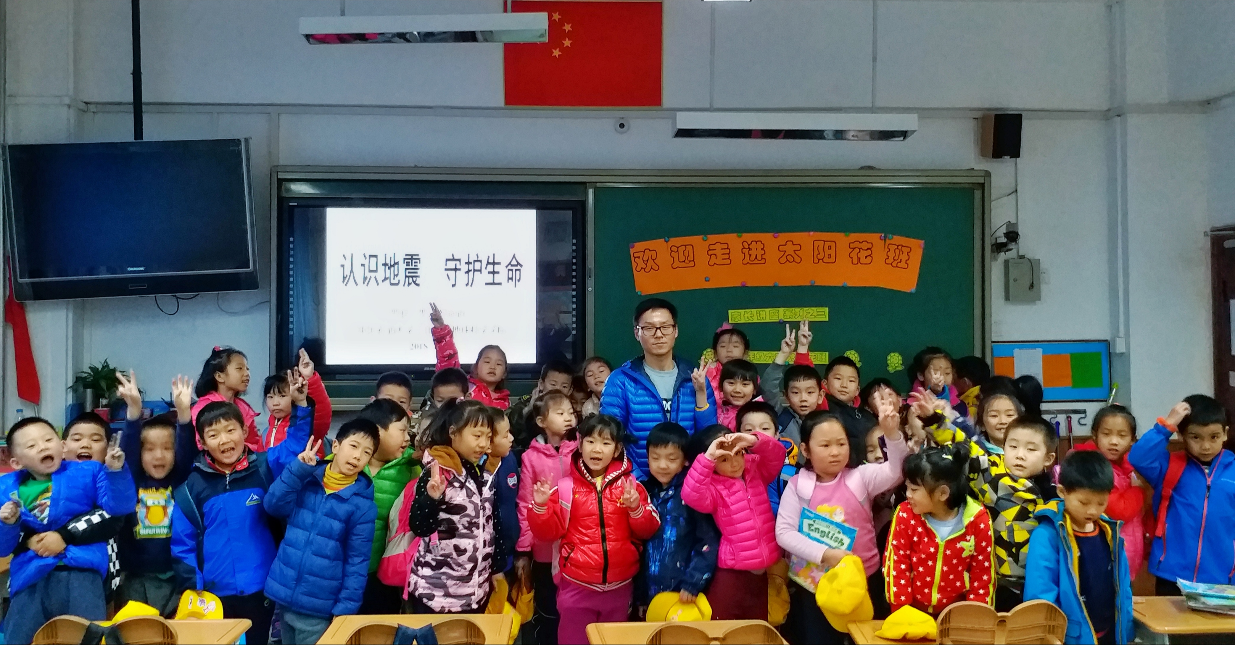 “那么,世界上哪些地方容易发生地震呢?如果地震来了我们又该怎么办呢?”学生们都开动小脑筋,高高地举起小手,争先恐后地提出自己的解救方法。罗教授用轻松的儿歌教会学生避险自救方法:“遇地震、先躲避,桌子床下找空隙,靠在墙角曲身体,抓住机会逃出去,远离所有建筑物,余震蹲在开阔地”,安全意识常记心间。”