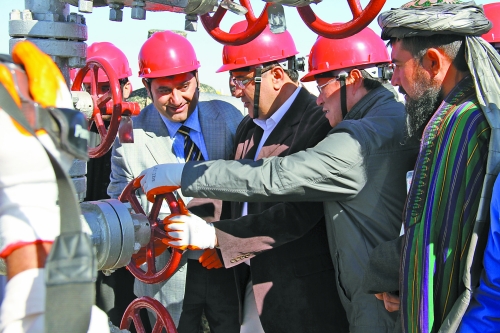 10月20日,在中油国际阿富汗AD项目中阿员工的陪同下,阿富汗能矿部部长瓦赫杜尔·沙赫拉尼及各方人员100多人共同见证了阿富汗ANGOT油田开井投产仪式。