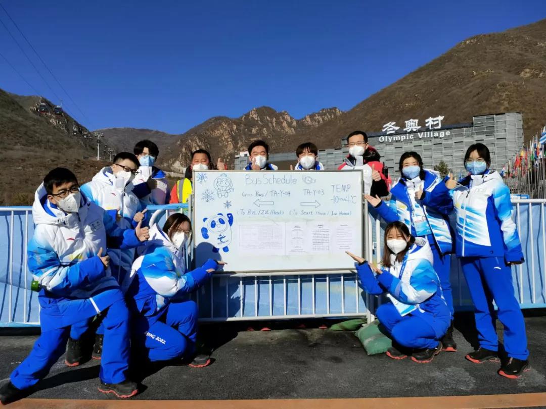 由于闭环内车辆多路线复杂,为了保证运动员准时、安全抵离,志愿者们在运动员班车场站用提示板制作了简易乘车时间表,每天将当日班车打印张贴,供外国朋友们查询。同时为了让时刻表看起来更加“吸睛”,志愿者们又在提示板上画上了“时尚顶流”冰墩墩,现在途经此处的外国友人总会拿起手机与志愿者们合影,俨然成了冬奥村内的网红打卡地。