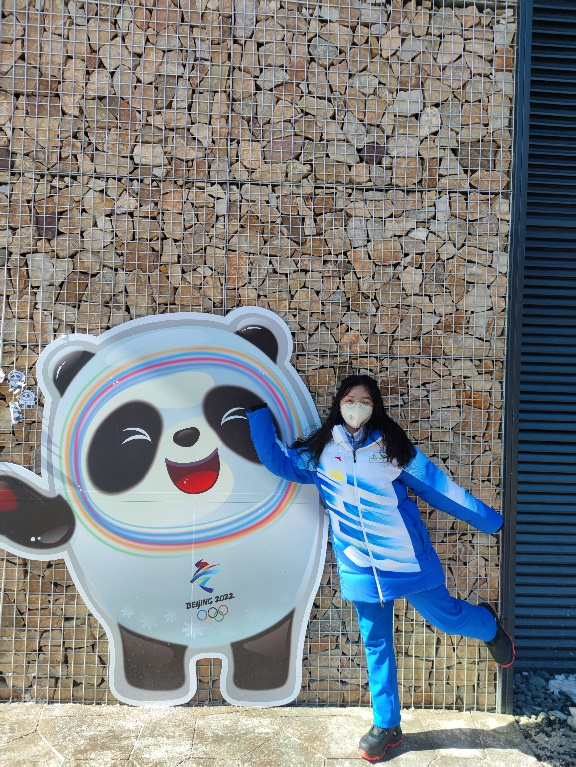 2022年北京冬奥会期间,她在延庆冬奥村里担任人事助理。主要负责收集、整理和汇总各类工作人员档案,为工作人员设计节日祝福和日常激励,还负责了物资的发放、考勤等事务性工作。