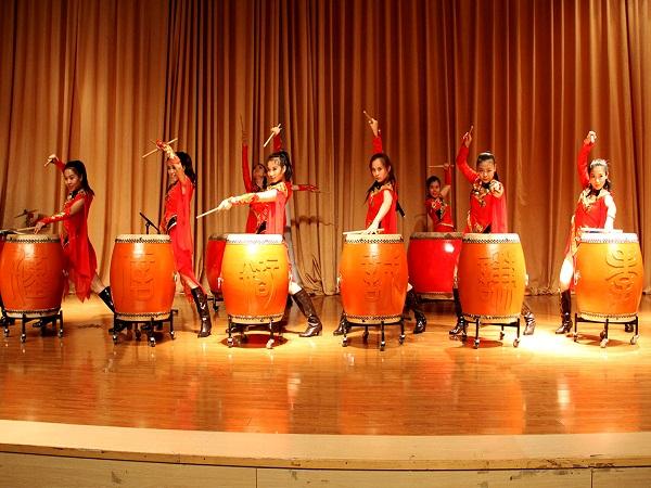 此次演出为红樱束女子打击乐团首次与石大合作,该乐团音乐风格融合民族传统与现代打击乐,大胆引进旋律丰富的背景音乐,以赋予作品强烈的时代感和现代感。演出中,曲目《盛世龙腾》、《龙腾虎跃》和《牛斗虎》以明快的节奏和高超的打击手法展示了打击乐的艺术魅力。小品打击乐《寺庙新声》以新颖的艺术表现形式和幽默诙谐的表现手法赢得了现场观众的热烈掌声。乐团还邀请现场观众互动表演,普及打击乐的演奏技巧并且让学生亲自动手感受打击乐的音乐魅力。演出最后,乐团演奏了首创打击乐音乐剧《木兰》选段和曲目《中国龙》,乐团成员以娴熟精湛的打击技巧,奔放热情的飒飒英姿和恢弘磅礴的宏大气势感染了石大师生,并鼓励大学生感受民族艺术,接触民族艺术,传承民族艺术。
