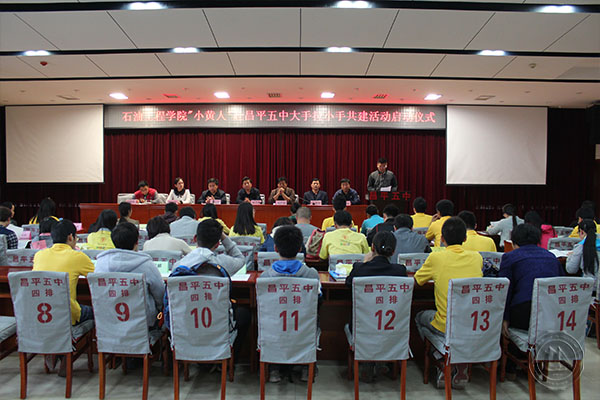 本次启动仪式拉开了石油工程学院“小黄人”赴昌平五中大手拉小手共建活动的序幕,为即将在昌平五中开展的活动奠定基础,石大学子将与昌平五中的同学们“大手拉小手”,与时俱进,携手进步。