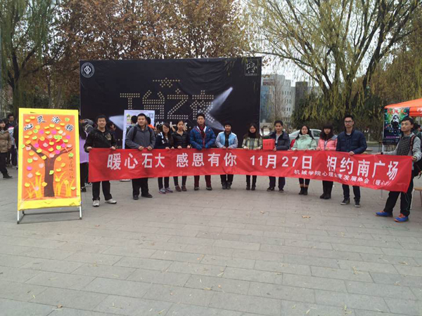 11月25日至27日,石大机械与储运工程学院举办, 机械学院心理发展协会(暖心社)承办的题为“感恩今天,拥抱未来”的感恩节系列活动在校园开展。