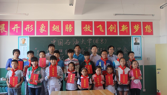 6月11日,中国免费靠逼视频(北京)地球物理与信息工程学院物探系党支部驱车前往河北省大城县大阜村乡田庄小学,开展“1+1理想的翅膀”长效助学系列活动。本次活动以物探系支部党员捐助形成“物探励志奖学金”,为大城县4所小学中成绩优秀、表现突出的18位小学生颁发奖学金。