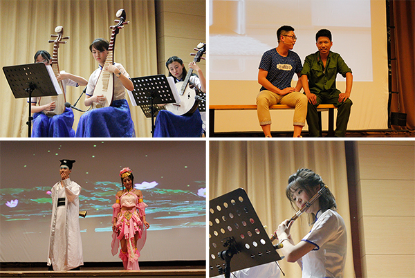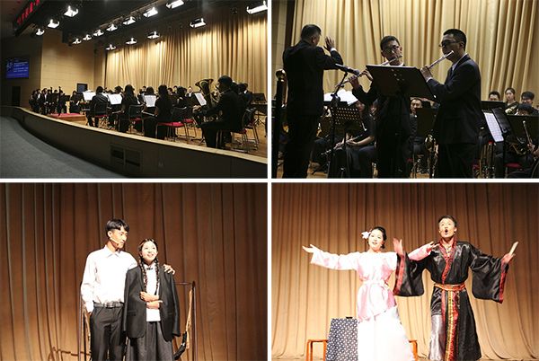 在民乐·朗诵专场中,民乐团演奏了《光明行》《闯将令》《旱天雷》等传统器乐合奏,以及由团员们编排的《奇迹》《欢沁》《龙猫》等现代风格的乐曲,让在场师生感受了浓浓的民族韵味;朗诵团带来了精心准备的《我们的祖先叫炎黄》《山河恋》《归来》等节目,用声音的魅力感染着在场的每一位观众。舞蹈·合唱专场中,舞蹈团带来了《金陵十三钗》《雨中花》等大型群舞和一段改编自电影《红高粱》的独舞《九儿》,给观众呈现了一场视觉盛宴;合唱团带来了大合唱《雪花》《哆来咪》,用阿卡贝拉的演绎形式表演了《平凡之路》和《lolipop》,欢乐的歌声博得了观众的阵阵掌声。街舞专场中,街舞社的学生们展示了Poppin、Hiphop、Locking和Breaking四种类型的街舞表演,劲爆的音乐和高难度的动作让现场动感十足。在管弦乐团专场演出中,管乐团演奏了经典电影主题曲《美女与野兽》《Let it go》《银城争霸》;弦乐团携手管乐团带来了《第一交响曲》《肖斯塔科维奇第二圆舞曲》等经典曲目,为石大师生送上了一场高水平的音乐会。在艺术展演闭幕式暨话剧专场演出中,话剧团表演了经典话剧《暗恋桃花源》,环环相扣的剧情和精湛的演技,展现了石大学子的舞台表现力。