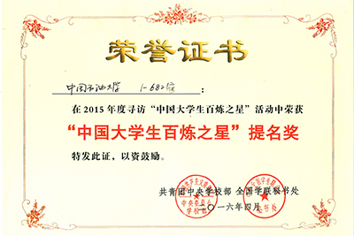 日前,由团中央学校部、全国学联秘书处组织开展的2015年度寻访“中国大学生百炼之星”活动结果揭晓。石大石油工程学院1-682宿舍荣获2015年度“中国大学生百炼之星”提名奖。