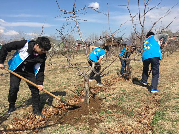 同学们到达智光特殊儿童学校后,在学校教师的指导下用铁铲挖出一个个等大等距的坑,然后按照步骤种植果树,圆满完成学校果园果树种植的任务。本次“温暖智光行”活动的成功举行,体现了同学们对志愿活动的热爱,弘扬了社会主义核心价值观,宣传了环保理念。