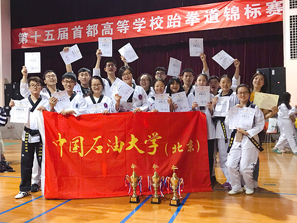 6月8日,第十五届首都高等学校跆拳道锦标赛在北京林业大学举行,来自清华大学、北京大学、北京建筑大学等30所高校的336名运动员参加了比赛。石大学子杨庚明获女子竞技73Kg级冠军,刘瑞璟、贾云倩,曹艳静、孙德欣分别获竞技、品势混双项目第二名,刘扬、孙德欣分别获竞技、品势个人项目第三名,石大跆拳道队获男女团体总分第四名,体育与人文艺术学院教师吴素英获“优秀教练员”称号,学生贾云倩获得“优秀运动员”称号。