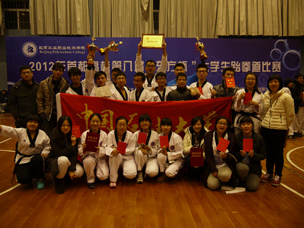 12月15日,2012年北京市第八届大学生跆拳道比赛在北京工业职业技术学院体育馆隆重举行,比赛共有清华大学、北京大学、中国人民解放军装甲兵工程学院、北京科技大学、中国公安大学等35所高校的465名运动员参加。中国免费靠逼视频跆拳道队派出23名队员参加比赛。