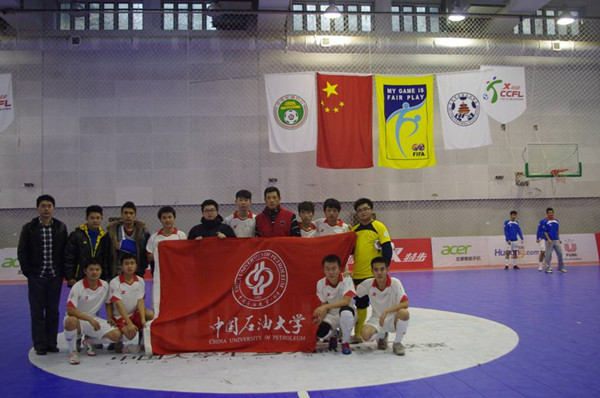 中国大学生五人制足球联赛由中国大学生体育协会、中国足球协会共同主办,是目前国内大学生五人制足球比赛中参赛队伍最多、竞技水平最高、影响最大的官方赛事。石大五人制足球刚刚起步,此次是第二次参加中国大学生五人制足球联赛。赛前,队员们克服各种困难,刻苦训练;在为期5周的比赛中,队员们顽强拼搏,虽小组赛首战失利,但却越战越勇,最终取得了第四名的好成绩。