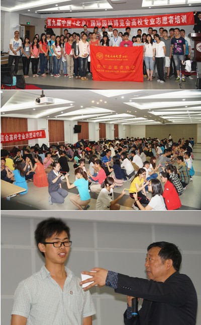 王燕斌教授用生动感人的个人经历向同学们诠释了何为志愿者,并向同学们介绍了此次园博会的目的、意义以及近况。他还还通过多组图片深入了解了园博会会徽和吉祥物的代表含义。杨金华教授则通过几组有趣的游戏以一种轻松地方式让现场的志愿者们了解到了团队意识和临场控制能力的重要性。他还向同学们介绍了“北京志愿者”的精神内涵。杨勇则向志愿者们详细介绍了本次园博会的基本情况以及北京园博会志愿者排班选岗系统。