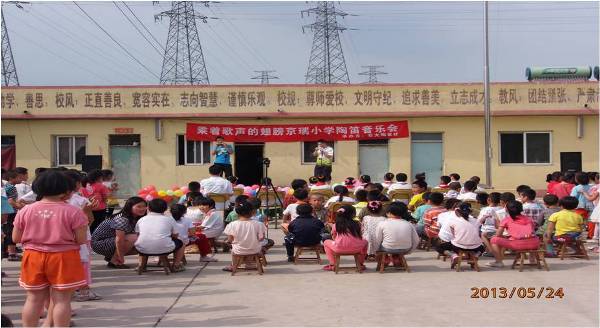 5月24日,石大陶笛社学子为响应大学生志愿服务社会的精神,在六一儿童节到来之际,为昌平区南郝庄打工子弟小学京瑞小学全校师生们举办了一场丰富多彩的陶笛专场音乐会。音乐会上,陶笛社同学表演了《喜洋洋与灰太狼》、《天空之城》、《快乐的小母鸡》等大家耳熟能详的曲目。