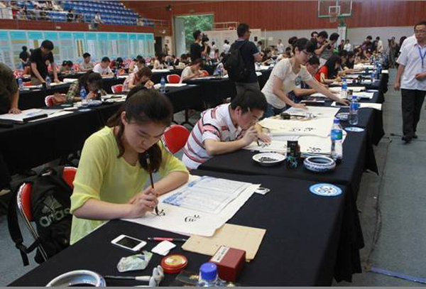 北京市大学生书法大赛由北京市教委主办,首都师范大学承办,通过鼓励和推动大学生开展书法研习和创作,达到传承书法艺术,发扬优秀文化传统。本届大赛以“品味笔墨静雅,承继文化精粹”为主题,向北京市41所参赛高校发出邀请,共收到456件优秀的复赛作品。经过评选,共有98人参加最后的决赛。