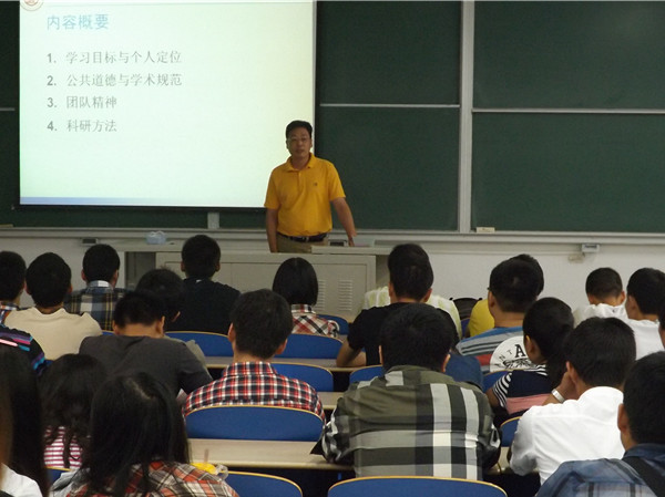 讲座中,林京首先向大家分析了作为一名研究生的主要任务,他强调从本科到研究生的跨越远大于从高中向大学的跨越,研究生阶段作为一个从学生时代向社会的过度阶段,需要重点掌握面临具体问题的解决方法,同时更应注意教材之外知识的涉猎和为人处事能力的锻炼。林京从四方面重点介绍了作为研究生应如何发掘自己:一、树立学习目标,找准个人定位。通过引用《礼记•学记》中“君子曰:‘大德不官,大道不器,大信不约,大时不齐。察于此四者,可以有志于学矣’” 来告诫大家在研究生学习过程中应明确自己要学到和追求的东西;二、秉持公共道德,遵守学术规范。他结合自己学生的亲身经历向大家讲述了公共道德与学术规范的重要性和必要性,并提到了在我们工作和生活中情商的重要作用;三、培养团队意识,发扬团队精神。即在完成一件工作或一项课题时,要有积极主动的工作作风、热情乐观的生活态度、团结协作的团队精神;四、掌握科研方法。主要针对科研结果的整理与论文写作方面的具体方法进行了详细的阐述和解读。