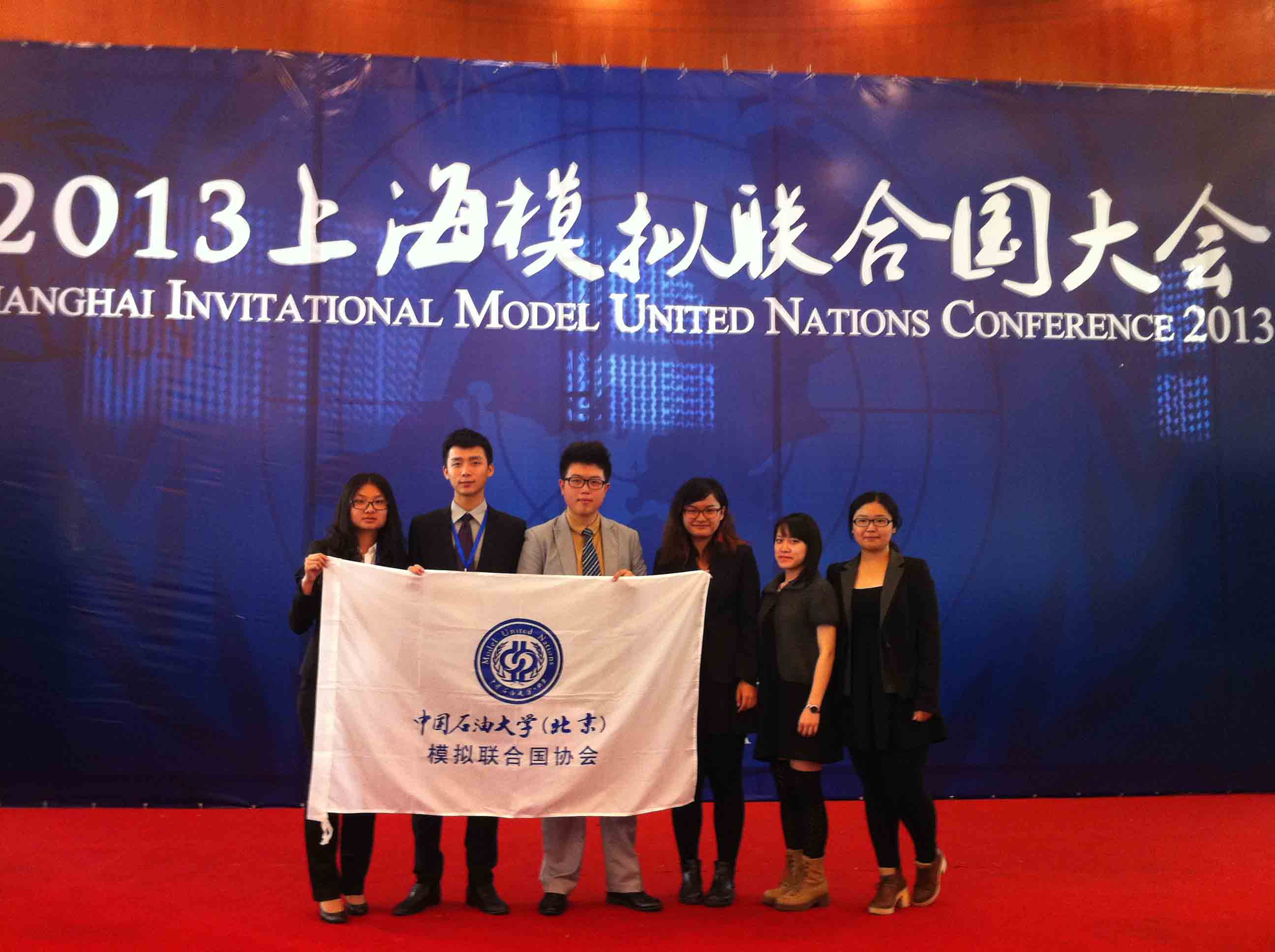 10月24日至27日,2013上海模拟联合国大会(SIMUN2013)在上海市松江区宝隆花园酒店召开,来自全国70所院校的400余名代表参加了本次大会,其中包括石大模拟联合国协会的6名代表。