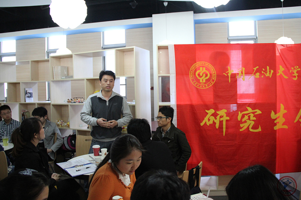 4月4日中午,由石大校团委主办、校研究生会承办的第二期学术沙龙在学生活动中心咖啡厅举行。本期学术沙龙以“学长对我有话说——如何开展科研”为主题,邀请了来自化学工程学院、石油工程学院的博士二年级学生周小峰与程万,其中,周小峰已在国内外期刊上发表多篇高水平文章,程万已获得2014年国家公派联合培养博士优先推荐资格。