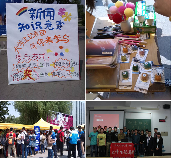 本次活动设置了热点新闻知识答题活动,题目主要来源于近期发生的社会热点新闻和校内重大新闻,以及同学们比较感兴趣的娱乐新闻和体育新闻。同学们积极参与答题,120份试题很快被抢答完毕。其中成绩较好的同学获得了文具、饮料等奖品。