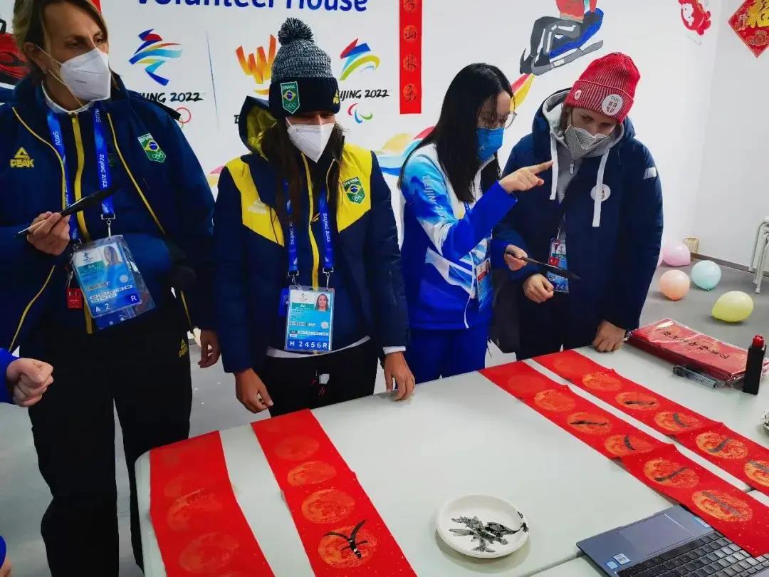 除夕当天,中石大人导演并参与了延庆冬奥村志愿者春节联欢晚会,以冰雪谱成乐章,用祝福奏出所盼,将新时代青年积极上进、奋发有为的形象展现给延庆冬奥村的每一位村民。当晚,中石大志愿者们邀请塞尔维亚、巴西代表团的运动员和官员在延庆冬奥村志愿者之家共度除夕,和他们一同绘福字、写春联。