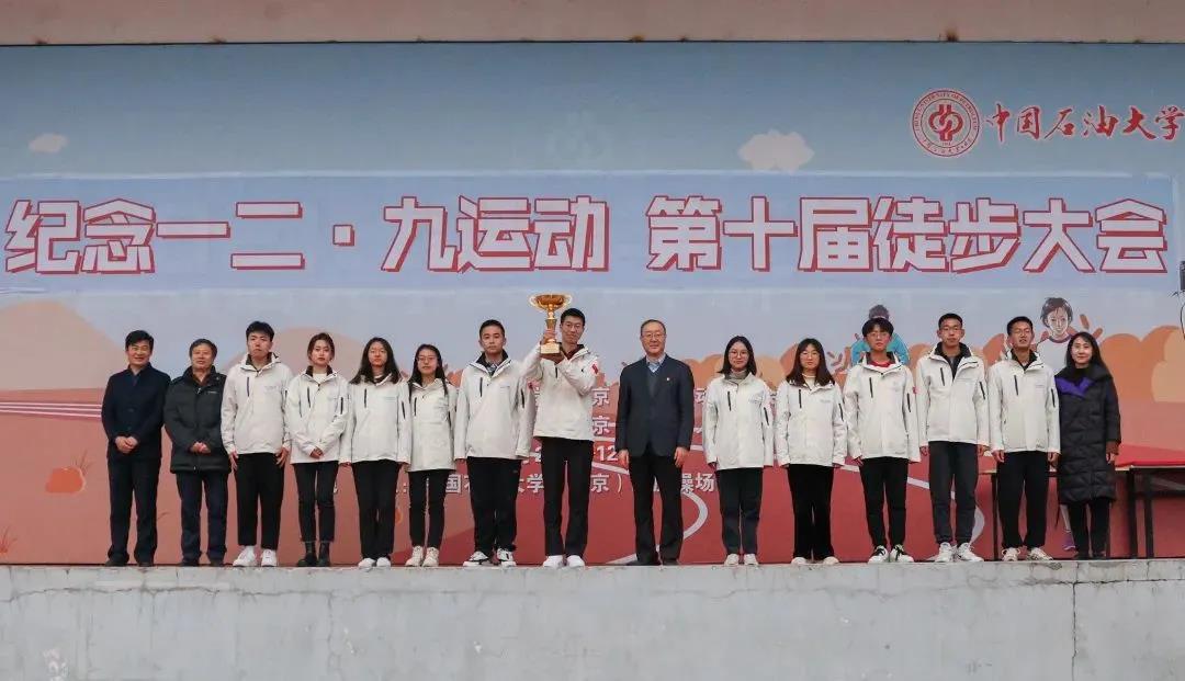 2021年12月9日,党委书记陈峰在纪念一二·九徒步大会活动中,为中石大冬奥志愿服务队颁奖。