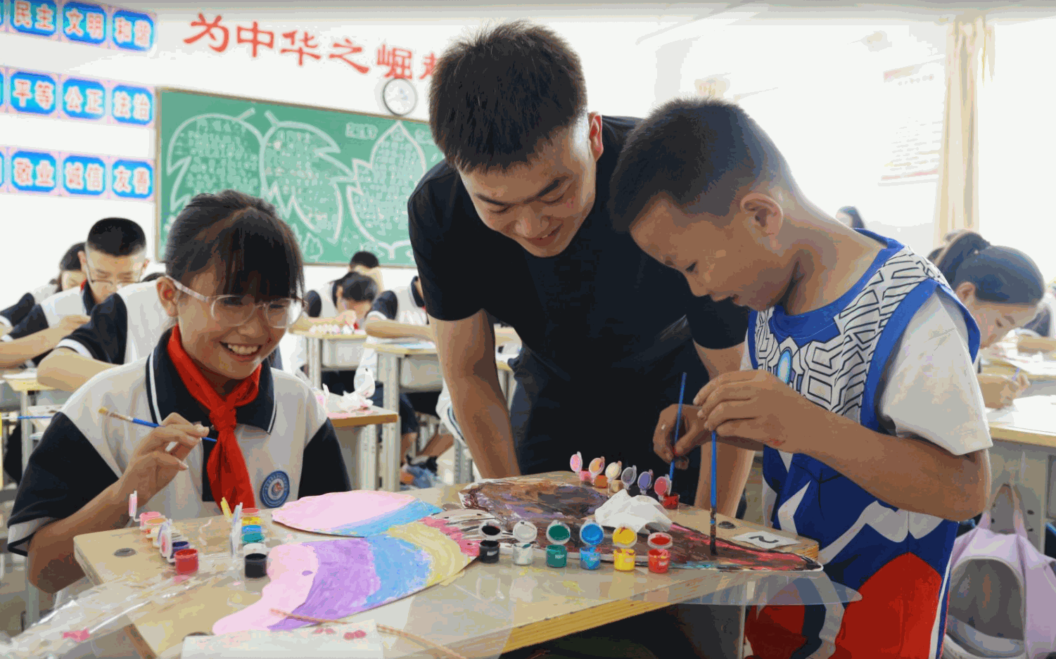 公益支教献爱心,五育并举践担当。“铁人先锋”营小组连续三年支教屯留四中,设计100余节“铁人精神宣讲”“非遗绘画”课程,制作24期“筑梦校园”推送,助力学校升学率提升。“油Young青年”志愿服务队在保定中国海油COSL希望小学,开设红色教育、能源科普等7大板块28节课程,并入户排查安全隐患,建立学生“绿色成长档案”。